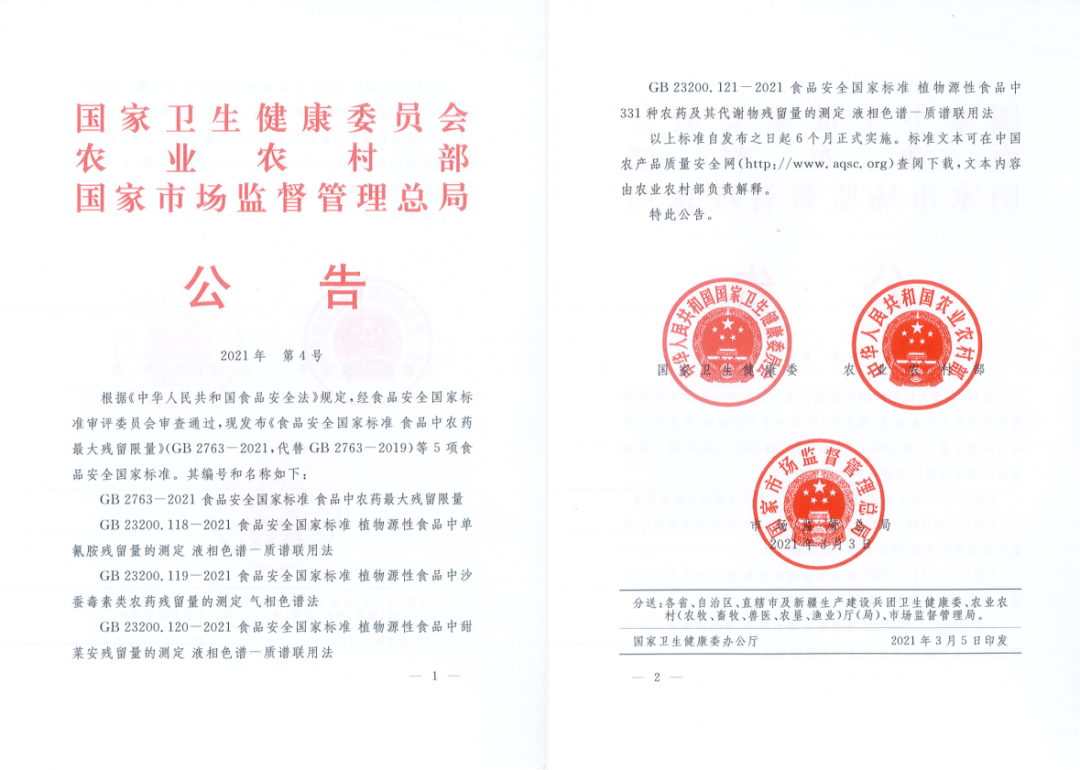 9月3日,由國家衛生健康委員會、農業農村部和國家市場監管總局聯合發布的GB 2763—2021《食品安全國家標準 食品中農藥最大殘留限量》(以下簡稱“新標準”)正式實施。 新標準于2021年3月3日發布,現已完全代替GB 2763—2019版本標準。至此,我國農藥殘留限量標準突破1萬項,2021版GB 2763對標“最嚴謹的標準”要求科學設定殘留限量,突出高風險農藥和重點農產品監管,更大范圍保障農產品質量安全,確保老百姓“舌尖上的安全”。 中華合作時報·茶周刊全媒體記者了解到,2005年我國食品質量安全標準開始發布,茶葉質量安全執行GB 2763—2005《食品中污染物最大殘留限量》和GB 2762—2005《食品中最大農藥殘留限量》標準,在這兩個國家標準中涉及茶葉的農藥殘留限量有9種,鉛和稀土各1種。 隨后,在2017年6月18日正式實施《食品安全國家標準 食品中最大農藥殘留限量》(GB 2763—2016),規定了茶葉中48項最大農藥殘留限量。 GB 2763—2019《食品安全國家標準 食品中農藥最大殘留限量》正式實施于2020年2月15日,該標準替代了GB 2763—2016和GB 2763.1—2018《農藥最大殘留限量》標準,規定了茶葉中65項最大的農藥殘留限量。 此次實施的GB 2763-2021《食品安全國家標準 食品中農藥最大殘留限量》新標準規定了564種農藥在376種(類)食品中10092項最大殘留限量,標準數量首次突破1萬項,達到國際食品法典委員會(CAC)的近2倍。 從茶葉中的農殘限量趨勢來看,由GB 2763—2005規定的9項,到GB 2763—2012中的25項、GB 2763—2014中的28項、GB 2763—2016和GB 276 3.1—2018中的50項、直到GB2763—2019中的65項。本次GB 2763—2021,涉茶限量指標達106項,增加了41項,增幅達63.1%。 新標準與GB 2763—2019對比,主要有三大變化: 首先是對涉茶項目進行了明確的分類,分為“飲料類:茶葉—本級分類”和“飲料類—繼承上級分類”;其中,飲料類:茶葉—本級分類的農藥殘留限量增至70項,占涉茶項目農藥殘留限量指標總數的66%;飲料類—繼承上級分類的農藥殘留限量增至36項,占涉茶項目農藥殘留限量指標總數的34%。 其次,新標準中新增的茶葉—本級分類的農藥殘留限量有6個項目,另,將三氯殺螨醇從茶葉—本級分類調整至飲料類—繼承上級分類;新增的飲料類—繼承上級分類的農藥殘留限量包括胺苯磺隆等35個項目。 第三,從106項涉茶限量指標來看,總體限量值低,其中,限量值在0.05mg/kg及以下的指標有53項,部分農藥限量值與相應檢測方法的定量限相當,突顯了對茶樹禁用農藥的監控。 農業農村部農產品質量安全監管司相關負責人表示:近年來,我國農產品質量安全例行監測中農藥殘留合格率均在97%以上,農產品質量安全總體可控,保持在較高水平。但是,在農業生產以小規模農戶經營為主的基本國情面前,必須采用多方面的手段,提高科學用藥技術,維護好農產品生產安全、農產品質量安全和生態環境安全。 一是加強源頭控制。充分發揮農藥登記的杠桿作用,進一步優化農藥產品結構。加快淘汰高毒、高風險農藥,控制低水平重復生產,積極發展高效、低毒、低殘留農藥,鼓勵生物農藥和特色小宗農作物的登記。 二是大力推動綠色防控措施。大力推廣生態友好型的農藥和劑型,逐步替代高毒、高殘留農藥,將目前仍在使用的高毒農藥逐步替代,同時,大力推廣替代農藥的植保措施,包括推廣使用天敵生物、燈光誘殺等物理手段和昆蟲信息素誘殺、迷向等。 三是加強高效安全科學施藥技術培訓。大力培訓農民和基層技術人員,提高他們的安全合理用藥意識和技術,普及科學合理用藥知識,減少濫用農藥現象,提高防治效果并降低農藥用量。 四是大力發展專業化服務組織。通過發展病蟲害專業化服務組織,提高農藥使用的專業化、規模化水平,使農藥的施用更加符合病蟲害防治的規律要求,達到更好地科學用藥、合理用藥的目的。 (茶周刊公眾號) |