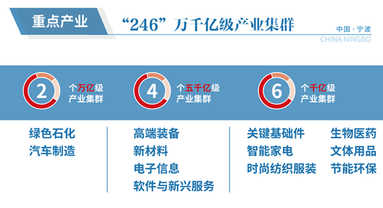 1、城市簡介 寧波是古代“海上絲綢之路”、“陶瓷之路”的東方始發港,被習近平總書記稱為記載古絲綢之路歷史的“活化石”。寧波舟山港自一體化以來,已一躍成為全球最重要的集裝箱遠洋干線港和國家主樞紐港之一,是國內重要的鐵礦石中轉基地和原油轉運基地、液體化工儲運基地,是華東地區重要的煤炭、糧食儲運基地。240多條國際航線連接著100多個國家和地區的600多個港口,勾畫著港通天下的航運貿易網。 寧波以全國0.1%的陸域面積,創造了全國1.2%的GDP、1.5%的財政收入,分別列副省級城市第3和第1位,在計劃單列市中均居第1位。 副省級城市、五大計劃單列市之一 世界第三大港口城市 “海上絲綢之路”東方始發港 中國大陸綜合發展水平前15強中心城市 長三角先進制造業基地 海陸總面積18172平方公里 常住人口854.2萬 行政區劃: 6區:海曙區、江北區、鎮海區、北侖區、鄞州區、奉化區 2縣級市:余姚市、慈溪市 2縣:寧海縣、象山縣 寧波舟山港:全球第一大港“11連冠” 寧波櫟社國際機場:長三角四大國際機場之一 市區內“半小時交通圈”,省會杭州“1小時交通圈”,上海“2小時交通圈” 長三角一體化發展的“金南翼”: 生產總值11985.1億元,同比增長6.8%(全國第12,人均GDP超2萬美元) 三次產業之比為2.7∶48.2∶49.1 財政總收入2784.9億元 工業增加值5164.6億元(居副省級城市首位) 寧波舟山港貨物吞吐量11.2億噸(全球唯一超11億噸超級大港),集裝箱吞吐量2753.5萬標箱(全球第三) 外貿進出口總額9170.3億元(外貿出口額全國第五) 國內招商引資實到資金1368.27億元 實際利用外資23.6億美元 63家境外世界500強企業在甬投資項目141個,投資總額187億美元 中國(浙江)自由貿易試驗區聯動創新區 中國(寧波)跨境電子商務綜合試驗區 全國首個“16+1”經貿合作示范區 “一帶一路”建設綜合試驗區 跨境電商進出口額1282億元 2019年新批外商投資項目737個,投資總額123.96億美元,其中日本三井物產、日本伊藤忠集團、法國ENGIE集團、泰國正大集團、荷蘭喜威、臺塑集團、德國博世集團和德國林德公司等8家境外世界500強企業在我市新設項目或加大投資項目10個。 寧波是全國開放程度最高的城市之一,與220多個國家(地區)建立了投資貿易關系,與國外100多個城市締結了友城關系,是全國第八個外貿超1000億美元城市、第九個累計實際利用外資超500億美元城市、首個跨境電商進口年交易額突破100億元的城市、第四個境外投資額超100億美元的副省級城市。近年來,寧波市不斷深化與中東歐等“一帶一路”沿線國家的開放合作。2019年經黨中央、國務院批準,中國—中東歐國家博覽會成為國家級國際性展會,于每年6月在寧波舉辦。同年,中國(浙江)自由貿易試驗區寧波聯動創新區總體方案正式公布,未來的寧波將成為更高水平、更高質量的對外開放高地。 2、重點產業 先進制造業+國際貿易 雙翼齊飛、融合發展 “246”萬千億級產業集群: 寧波在原有產業體系的基礎上,從產業影響力、規模、集群化特征、發展潛力等方面,兼顧傳統產業和新興產業,遴選出12個重點發展產業作為重點培育對象。目標到2025年,建成綠色石化、汽車制造2個世界級的萬億級產業集群,形成高端裝備、新材料、電子信息、軟件與新興服務等4個具有國際影響力的五千億級產業集群,培育關鍵基礎件、智能家電、時尚紡織服裝、生物醫藥、文體用品、節能環保等6個國內領先的千億級產業集群。2019年,全市“246”萬千億級產業集群合計實現工業增加值3170.7億元,增長7.3%。 2個萬億級產業集群: 綠色石化。以化工新能源、化工新材料、高端石化產品為主要方向,建設國際一流的綠色石化產業基地。目前,寧波是中國七大石化產業基地之一,綠色石化產業規模大、實力強,產業體系完整,集聚了中石化鎮海煉化、逸盛石化、中海油大榭石化等一批行業龍頭企業。 汽車制造產業集群。以節能汽車、新能源汽車、智能網聯汽車及核心零部件為主要方向,推動整車規模化、汽車零部件高端化、汽車后市場專業化發展,力爭躋身全球汽車產業集群第一方陣。寧波現有以大眾、吉利為代表的12家整車企業,集聚了均勝、華翔、雙林等4400多家汽車產業鏈上下游企業,在產品梯度、品牌影響、市場渠道、研發創新等方面擁有較大優勢。 4個五千億級產業集群: 高端裝備。以智能制造裝備、專用裝備、其他高端裝備為主要方向,推動裝備制造工藝技術、核心控制系統等突破,發展數字化智能化產品。目前,寧波在數控機床、伺服電機、文體創意裝備等細分領域在國內外已具有較強競爭力。 新材料。以金屬新材料、先進高分子材料、磁性材料、電子信息材料為主要方向,加快上下游應用技術研發、商業化應用與新產品示范推廣。目前,寧波擁有韻升股份、江豐電子等一批行業龍頭企業,中科院寧波材料所、兵科院寧波分院兩家“國字號”科研機構。 電子信息。以集成電路、光學電子、汽車電子、智能電子產品為主要方向,以下游智能終端應用為引領,整合產品設計、系統集成、數字內容為服務,打造具有國際影響力的產業集聚地、全國領先的模擬集成電路產業創新中心。目前,寧波在光學電子、汽車電子、傳感器等產業集群具有較大優勢,涌現了均勝電子、舜宇集團等一批行業龍頭企業。 軟件與新興服務。以信息服務、科技服務