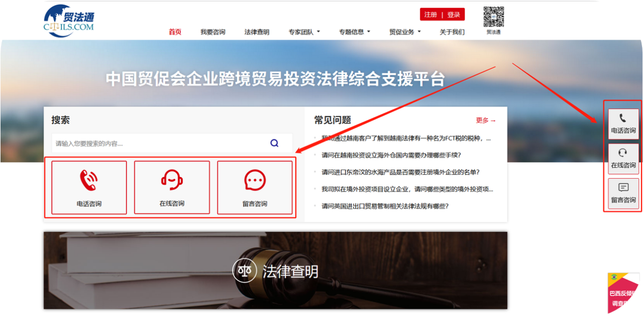 企業跨境貿易投資法律支援平臺(簡稱“貿法通”www.ctils.com)是由中國貿促會搭建的,以在線咨詢為主體,集法律查明、案例查詢、經貿預警、培訓會議、交流互動等為一體的涉外商事法律公共服務平臺。為企業在跨境貿易投資中遇到的知識產權、風險防范、爭端預防和解決、貿易救濟、出口管制和經濟制裁、反壟斷、國家安全審查、企業海外利益保護和預警等法律問題,提供全天候全流程的法律咨詢、法律查明、經貿預警、培訓會議等服務。 5月1日起,浙江省貿促會正式啟動第二次“貿法通”平臺輪值服務月工作!我們精心挑選法律部、商法中心和涉外商事法律專家庫等業務骨干,組建精英法律服務團隊,全力做好“貿法通”輪值期間接收的商事法律咨詢答復工作,為企業提供一站式、全天候、全方位的跨境貿易投資法律公共服務,助力企業“走出去”開拓國際市場。 企業可通過網站和微信公眾號兩種形式找到“貿法通”,并采取電話咨詢、在線咨詢、留言咨詢三種形式咨詢商事法律問題。請大家掃掃二維碼,多多關注喲! “貿法通”平臺已開通8種語言咨詢熱線,歡迎境內外企業致電咨詢! |
