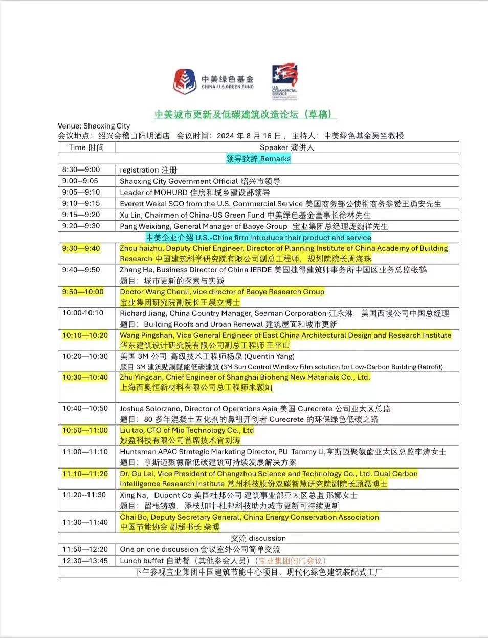 近期,省貿促會收到美駐華使館商務處邀請,該機構將于2024年8月16日在紹興市舉行中美城市更新及低碳建筑改造論壇。論壇具體議程及出席人員詳見下述表格。
