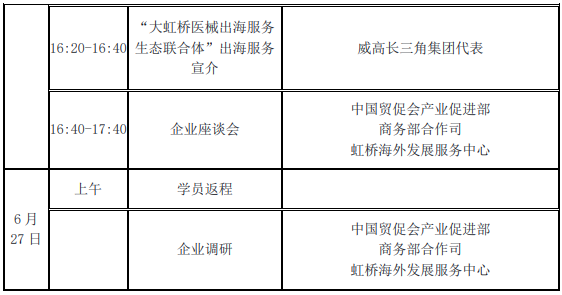 為推動產業鏈供應鏈國際合作,進一步助力中國企業高質量開展對外投資合作,中國貿促會產業促進部會同上海虹橋海外發展服務中心將于6月25日至27日在上海市舉辦2025年企業“走出去”系列培訓(醫藥健康產業專場)。 培訓采用“線下為主、線上線下結合”模式,邀請相關部委、行業協會、研究機構、金融機構、法律服務機構及已在境外開展投資的企業代表等授課,內容涵蓋政策宣講、形勢解讀、風險規避、服務資源整合、海外融資、項目注冊、園區推介、經驗分享、企業座談等環節,為有意赴境外投資的企業和機構打造“走出去”集聚式學習交流和合作對接平臺。 一、培訓時間、地點及方式 時間:2025年6月25日至27日 地點:上海市閔行區方亭路499號威高云行智創園9號樓2層致知廳 方式:線下參會+線上直播 二、組織機構 主辦單位:中國貿促會產業促進部、虹橋海外發展服務中心 承辦單位:威高長三角集團 三、參會人員 全國有意赴境外開展醫藥健康產業國際投資合作的企業代表,貿促系統及相關行業商協會、研究機構、服務機構代表等。 四、培訓日程 五、報名鏈接、二維碼(僅線下參會填寫) 此問卷即為報名鏈接,報名線下參訓人員請填寫提交相關報名信息。 六、參會方式 (一)線下 培訓費用:不收取培訓費。交通費、住宿費自理。 推薦住宿酒店(含早餐): 如住宿協議價酒店,請聯系威高長三角集團工作人員:劉馨雨,19145627687。 報到時間:6月25日(全天) 報名要求:每單位限報1—2人 報名時間截至6月25日12:00。培訓計劃招生100人,報滿即截止,報名審核通過后將以微信方式確認報名成功。審核通過后,請按計劃參會并嚴格遵守培訓紀律。 (二)線上 “中國貿促”、“虹橋海外發展服務中心”、“威高云行智創園”視頻號屆時將開通線上直播。 |