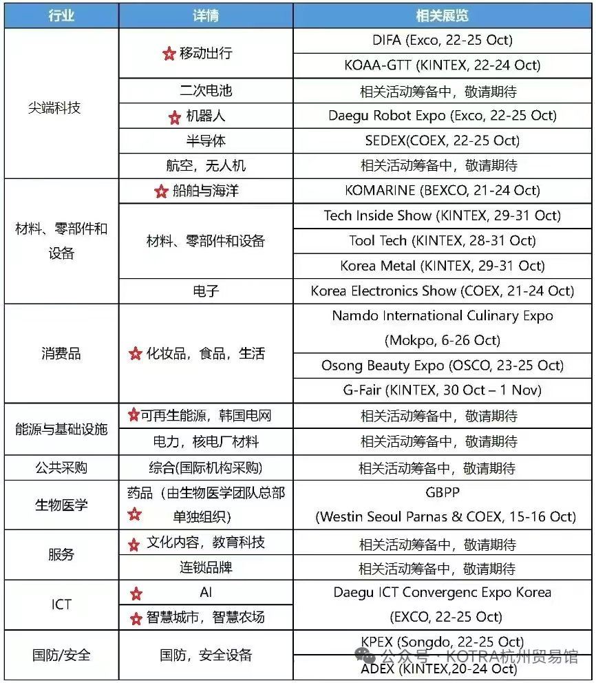 近日,大韓貿易投資振興公社杭州貿易館聯系我會,表示下半年將有兩場赴韓經貿洽談活動歡迎企業積極報名參加。詳情如下: 一、2025韓國-APEC商業伙伴關系洽談會(2025 Korea-APEC Business Partnership) 為促進韓國中小企業出口交易,KOTRA于2025年9月在韓國慶州舉辦APEC商業伙伴關系洽談會,為海外采購商和韓國廠家搭建互惠共贏的合作平臺,加強全球各行業領域專業人士之間的交流,促進行業創新發展。誠邀相關領域的意向采購商赴韓參加本次洽談會,熱忱歡迎采購意向客戶、經銷代理商、意向代理商踴躍報名參加。 *本次洽談會為韓國企業出口,中國企業進口方向洽談。 活動詳情: 時間:2025.09.24至09.25 地點:韓國 Rahan Select慶州酒店 主辦/承辦:韓國產業通商資源部, 慶尚北道, KOTRA 規模:韓國企業 300家 涉及領域:快消品、汽車、機器人等、機械、能源、ICT、生物醫藥、文化(動畫片、教育、連鎖)等 活動方式:提前選擇韓國企業,確認洽談日程,現場一對一洽談 選拔條件:現場合同簽約或者現場洽談數量5個及以上(必須滿足): 1.要簽訂合同的企業及項目委托方 (優先選拔);2.有實際項目需求及產品/服務進口需求的企業 (優先選拔);3.有與韓國企業合作經驗的企業 (優先選拔) 報名截止日期:至8月1日 二、2025韓國出口貿易洽談周(Boom Up Korea Biz Week) 為促進韓國中小企業出口交易,KOTRA于2025年10月21日至11月7日在韓國舉辦為期三周的2025韓國出口貿易洽談周。本次活動圍繞尖端科技、制造裝備及材料、消費品、能源建設、生物醫藥、教育文化、ICT、國防等領域版塊,為海外采購商和韓國廠家搭建互惠共贏的合作平臺,加強全球各行業領域專業人士之間的交流,促進行業創新發展。誠邀相關領域的意向采購商赴韓參加本次洽談會,熱忱歡迎采購意向客戶、經銷代理商、意向代理商踴躍報名參加。 活動詳情: 會議名稱:BOOMUP KOREA一對一商務洽談會 時間:2025.10.21至10.22 地點:韓國高陽市KINTEX第一展廳 主辦/承辦:韓國產業通商資源部/大韓貿易投資振興公社(KOTRA) 規模:韓國企業 4000家,海外采購商 1700家 涉及領域:移動出行/機器人/半導體/航空無人機/船舶與海洋/材料零部件和設備/電子/機械/再生能源/電網/生物醫藥/快消品(化妝品/食品/生活)文化教育/ICT(AI/智慧城市/智慧農場)等 活動方式:提前選擇韓國企業,確認洽談日程,現場進行一對一洽談 報名截止時間:首批至7月21日,第二批至8月27日 洽談周聯動會議介紹 時間:2025.10.21至11.7(三周) 地點:韓國首爾/京畿道/釜山/大邱等多地 規模:韓國企業 4000家,海外采購商 1700家 主要活動: 企業如有報名意向,請聯系大韓貿易投資振興公社杭州貿易館。 聯系人:楊經理,韓經理 電話:0571-81103099 郵箱:lxl1025@naver.com 微信:yangghua123 |