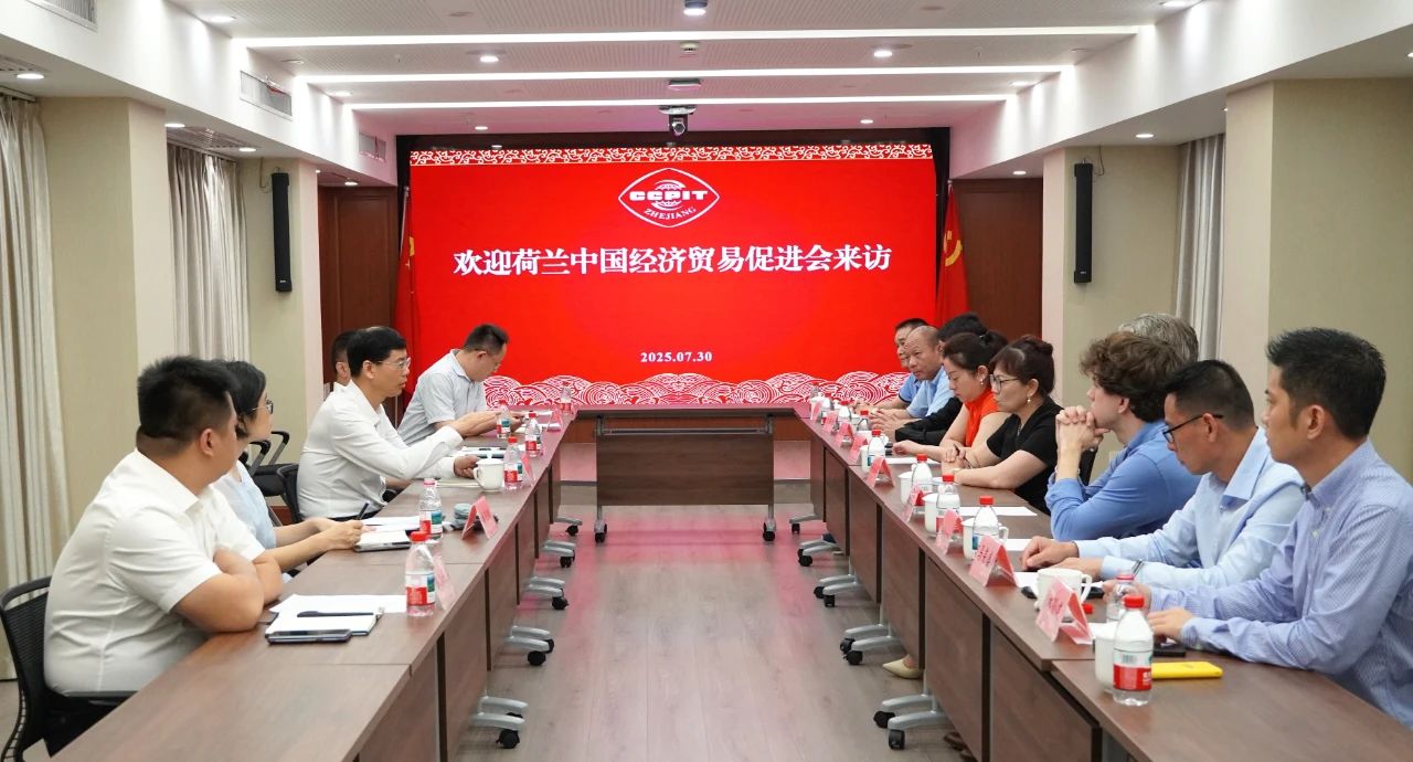 On the afternoon of July 31st, invited by Royal Thai Consulate-General in Shanghai, Mr. Lin Wei, Vice Chairman of CCPIT Zhejiang attened the 8th Bangkok-Shanghai Economic Conference and delivered a speech on the event. Besides, CCPIT Zhejiang also organized local Zhejiang enterprises to explore cooprative opportunities with Thai counterparts. Dutch China Trade and Economic Promotion Association Visits CCPIT Zhejiang On the morning of July 30th, Mr. Chen Jianzhong, Chairman of CCPIT Zhejiang met with Mrs. Xu Haiyan, the Chairman of Dutch China Trade and Economic Promotion Association. |