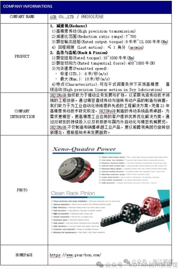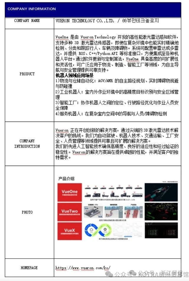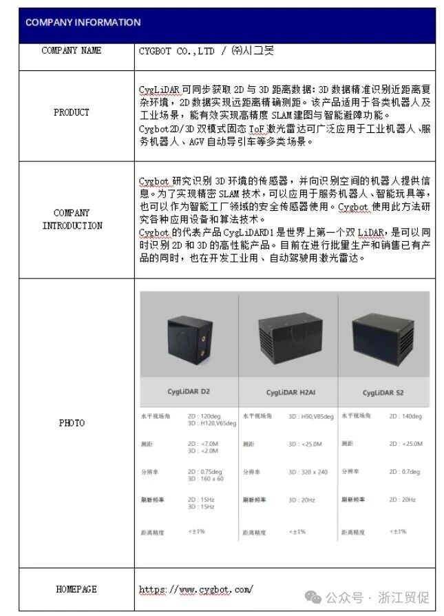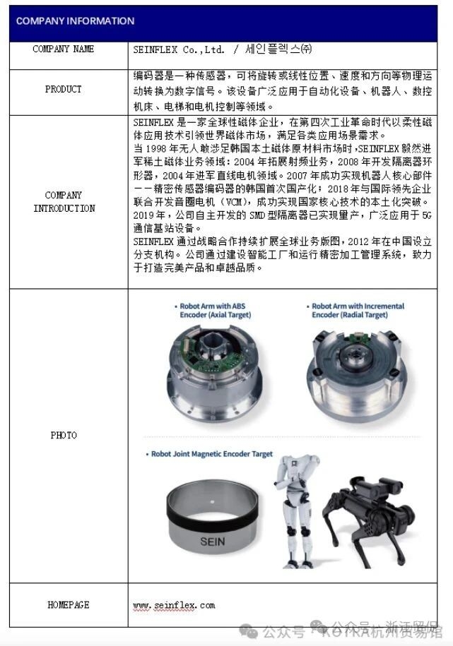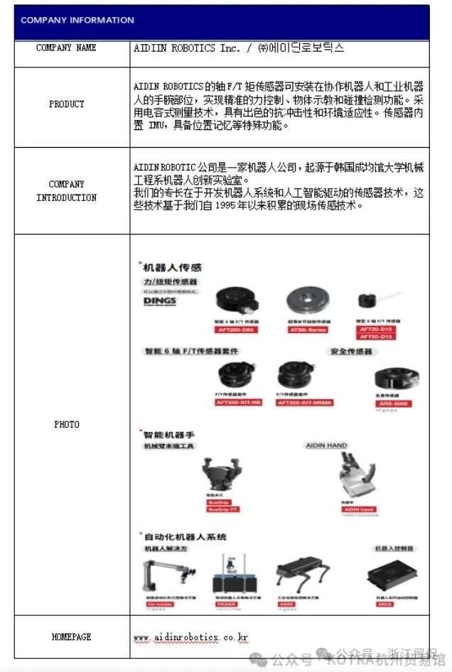 近期,省貿促會接到大韓貿易投資振興公社函告,該機構將于2025年9月22日至26日舉辦中韓機器人產業線上洽談會,屆時擬邀請9家韓國優秀機器人產業相關企業進行貿易洽談,現誠邀感興趣的中方企業參加此屆線上洽談,促進雙方企業的合作及發展。 活動概要 名稱:2025中韓機器人產業線上洽談會 時間:2025.9.22-9.26 地點:zoom 線上會議室 規模:韓國企業約9家 洽談方式:事先約定好時間段,進行中韓企業一對一洽談 參加費用:免費(配有中韓翻譯) 韓國企業介紹 01 02 03 04 05 06 07 08 09 如企業有意向報名參會,請盡快聯系大韓貿易振興公社杭州貿易館: 聯系人:王經理、楊經理 電 話: 0571-81103099 手 機: 13205811261(微信同號) 郵 箱: lxl1025@naver.com |