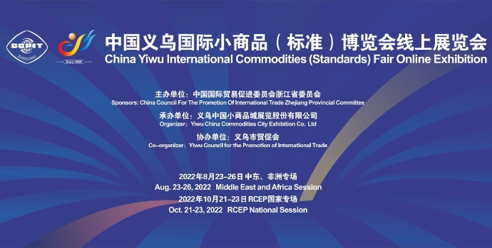 (一)名稱:中國義烏國際小商品(標準)博覽會線上展覽會 (二)組織機構:主辦:浙江省貿促會,協辦:義烏市貿促會 (三)平臺:中國義烏國際小商品(標準)博覽會官方平臺 (四)形式和時間:組織100家企業入駐平臺,自7月至10月進行不少于三個月的線上展示,8月23-26日面向中東非洲國家、10月21-23日面向RCEP國家分兩個階段進行集中對接洽談于5月17-21日集中安排一對一洽談。